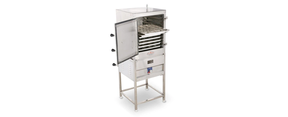 The Idly Steamer uses Gas as fuel to convert the water into steam in the idly vessel. The gas idly machine helps you to produce the idly at the desired location. The heat is transmitted evenly across the vessels and the temperature is controlled by the valves. The idly steam plant has a rubber gasket attached to the vessel door. The vessels are tightly packed to retain the food temperature.